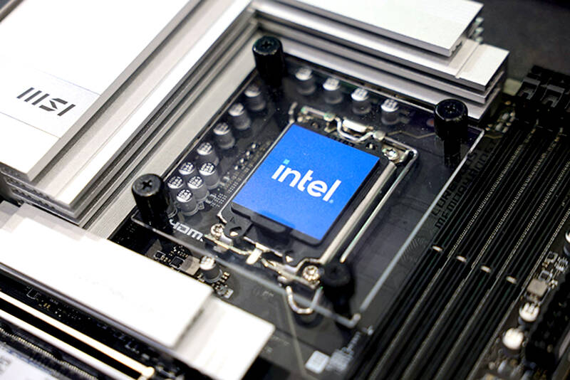 A sample of an Intel chip is displayed during Computex 2024 in Taipei on June 4 last year.